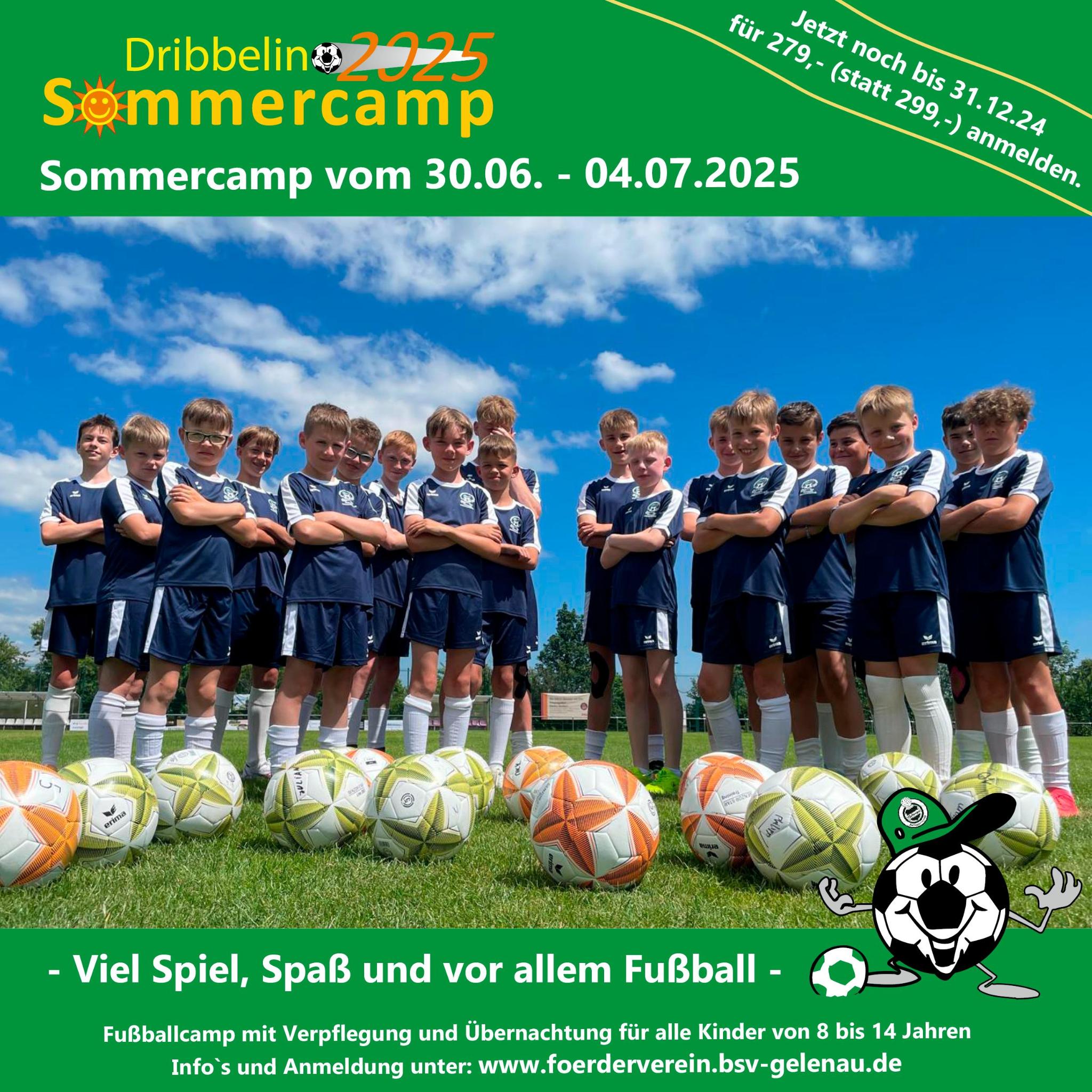 Das Camp umfasst 4 Übernachtungen mit Vollpension in den Bungalows am Freibad Gelenau inklusive aller Getränke sowie Rast- und Pausensnacks. Jeder Teilnehmer erhält eine persönliche Trainingsausrüstung (bestehend aus Trikot, Hose, Stutzen und Ball), täglich qualifiziertes /organisiertes Fußballtraining auf Kunstrasen/Rasen oder bei schlechtem Wetter in der Halle, eine Stadionbesichtigung oder Trainingsbesuch einer Mannschaft der 1. oder 2. Budesliga, kleine Turniere mit Pokalen und Auszeichnungen, sowie eine Urkunde (Foto Trainerteam und Teilnehmer).